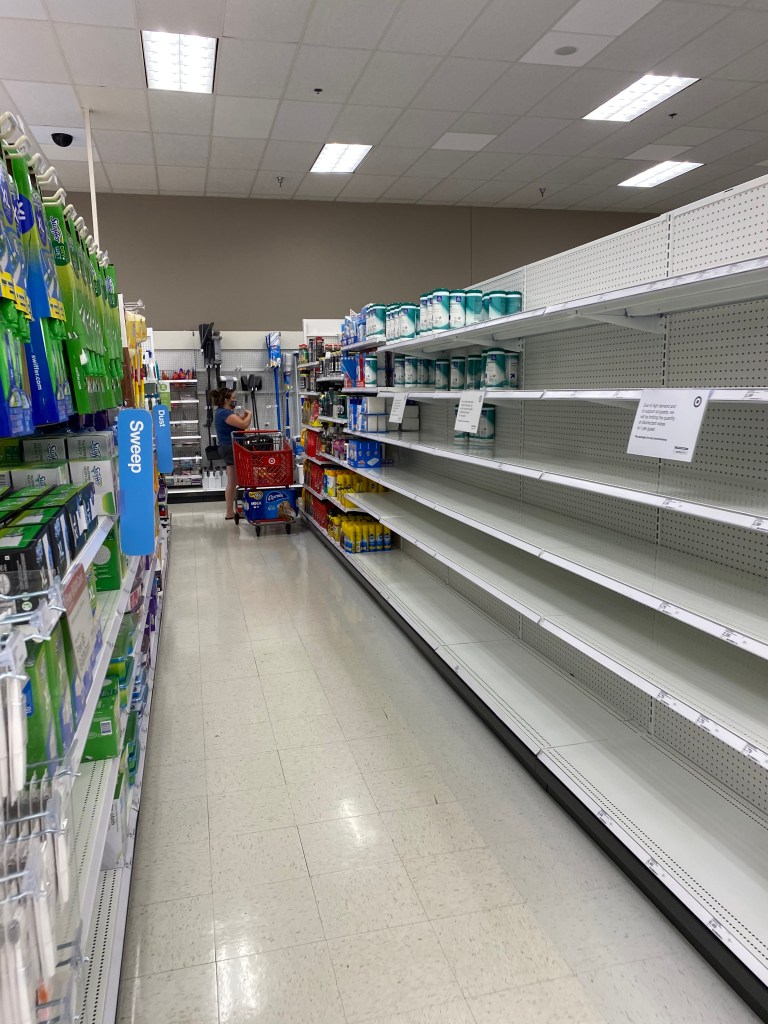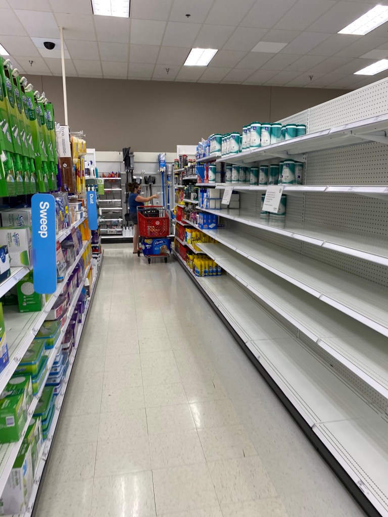 While taking my pictures, I wanted to show how these things that were once a rare find, are now everywhere. Toilet paper, paper towels and hand sanitizers are a select few things people were in desperate need of during quarantine back in March. I tried finding some pictures of people buying disinfecting spray or wipes, but as an essential worker who sees how fast these things are selling it out, I believe more people are giving up trying to find things like Lysol spray/wipes, simply because usually walking into a store they are sold out in my area.